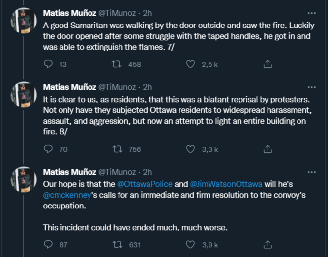 Siège d’Ottawa : des bloqueurs tentent de mettre le feu à un bloc appartement