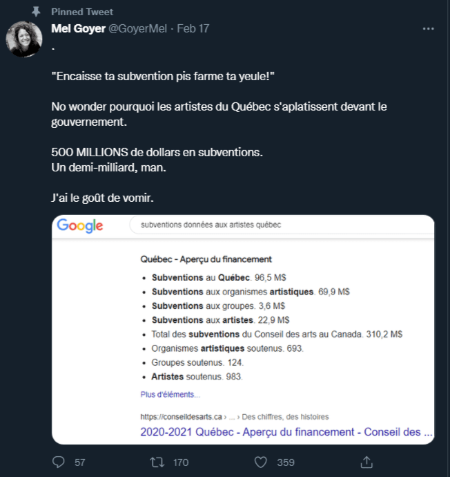 Mel Goyer se positionne contre les subventions pour la culture