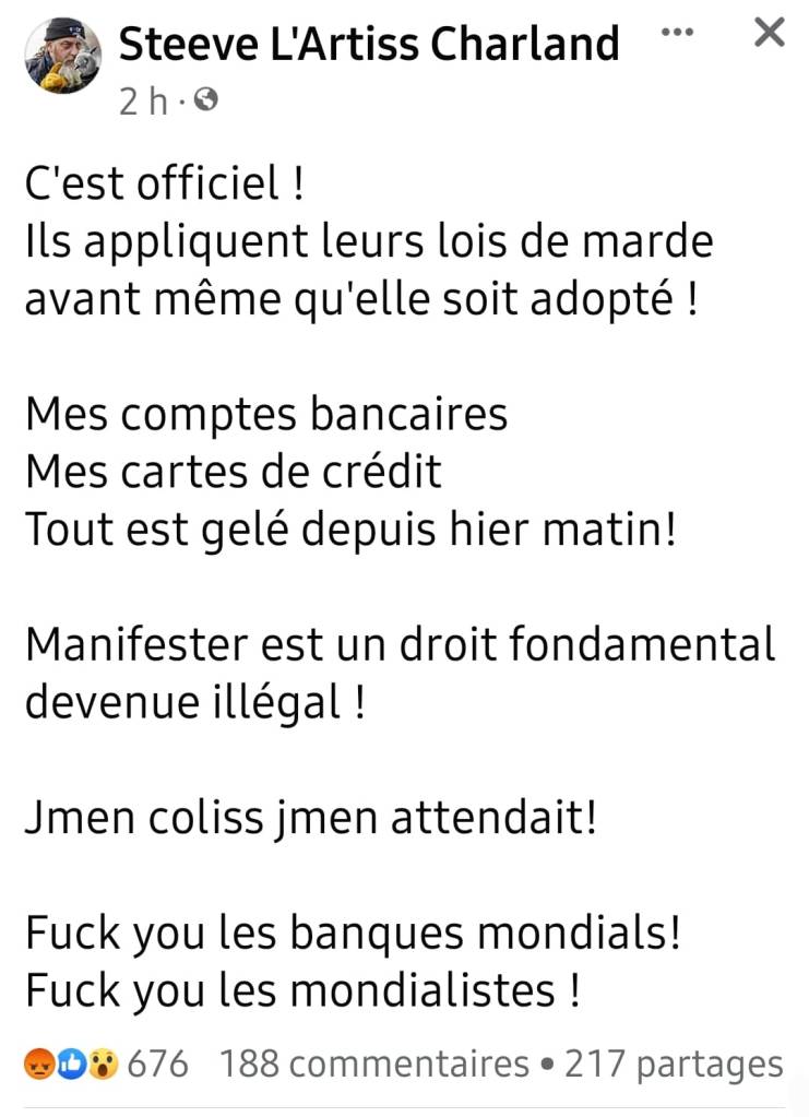 Et c’était quoi le droit des résidents de la ville d’Ottawa depuis trois semaines. Vous vous êtes mis dans la merde volontairement comme des grands.