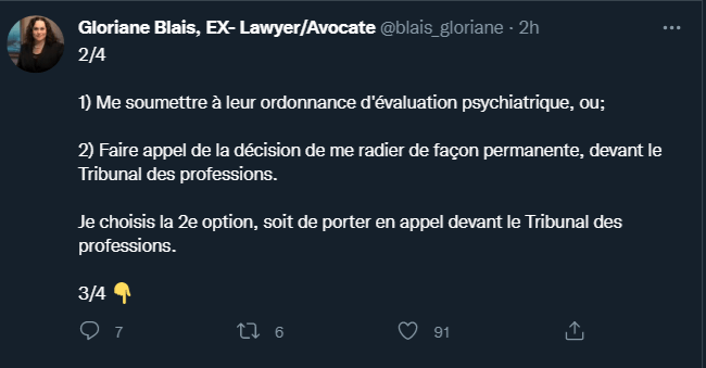 De plus, elle refuse une nouvelle fois de subir une évaluation psychiatrique.