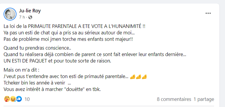 Petite message aux conspirationnistes : tes enfants ne t’appartiennent pas.